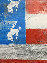 American Grit takes the American flag and gives it a Western edge. The stars are swapped out for bronc riders, a nod to strength, endurance, and the spirit of the West. The rough layers and worn look carry a sense of history and resilience, much like the land and people it represents.